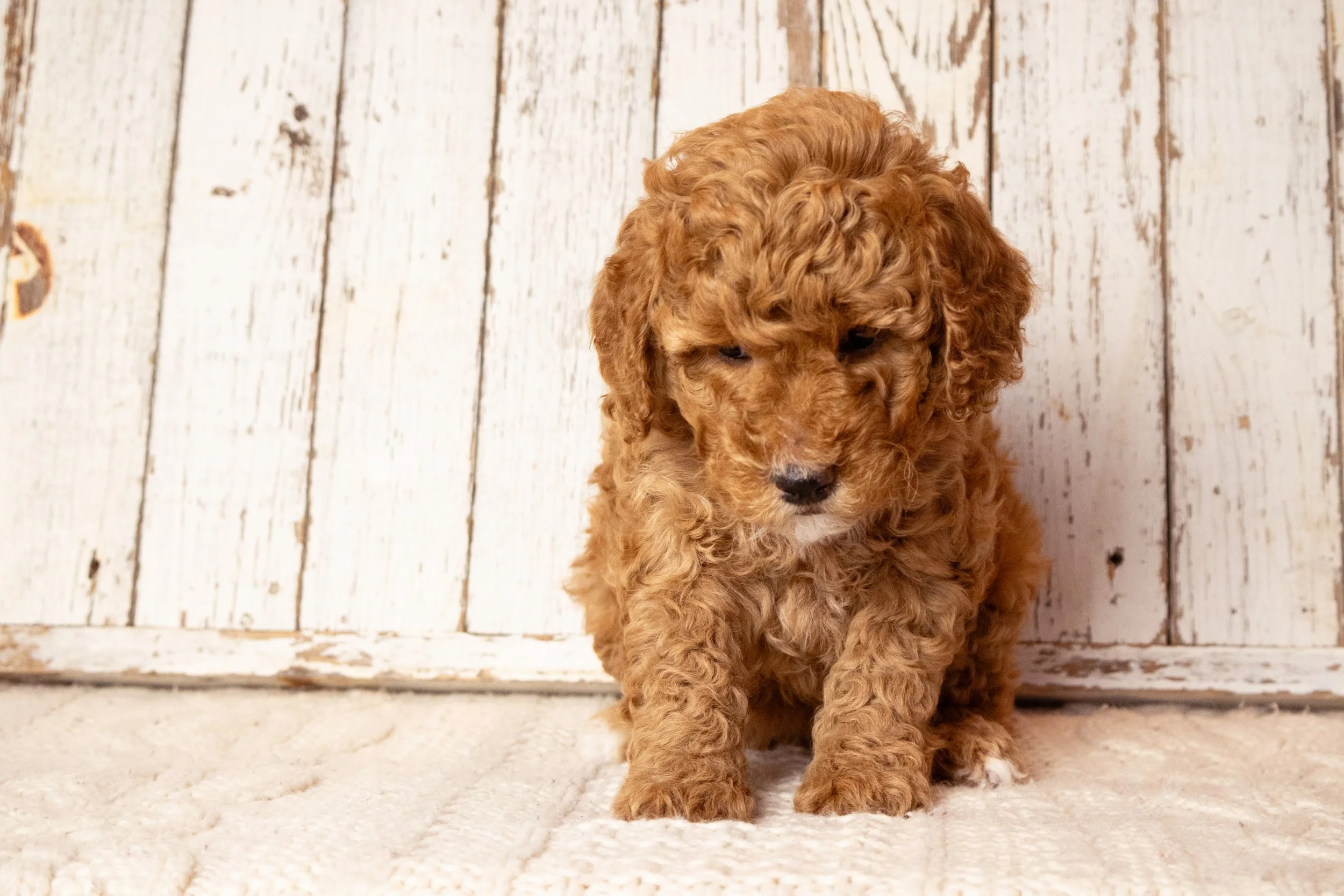 At Red Bred, we raise F1bb goldendoodle puppies, bred to have a higher percentage of poodle genetics. This typically supports features like minimal shedding and coats that may be more suitable for people concerned with allergens. Our puppies grow up in caring homes with early family interaction to gently support their emotional and social development.